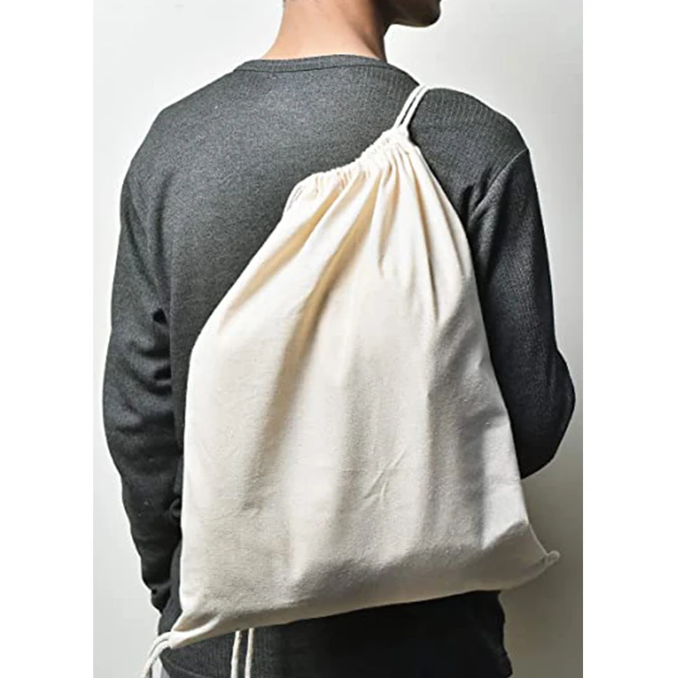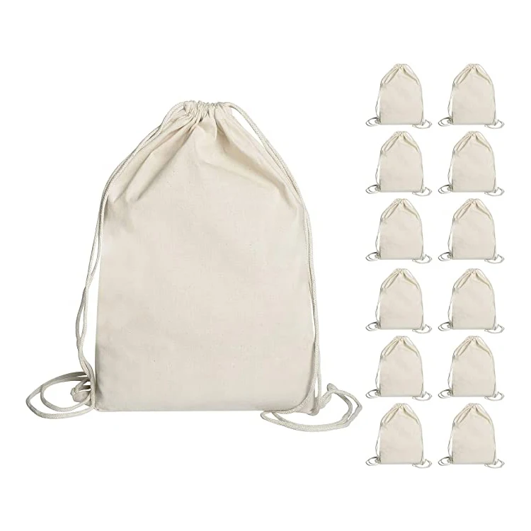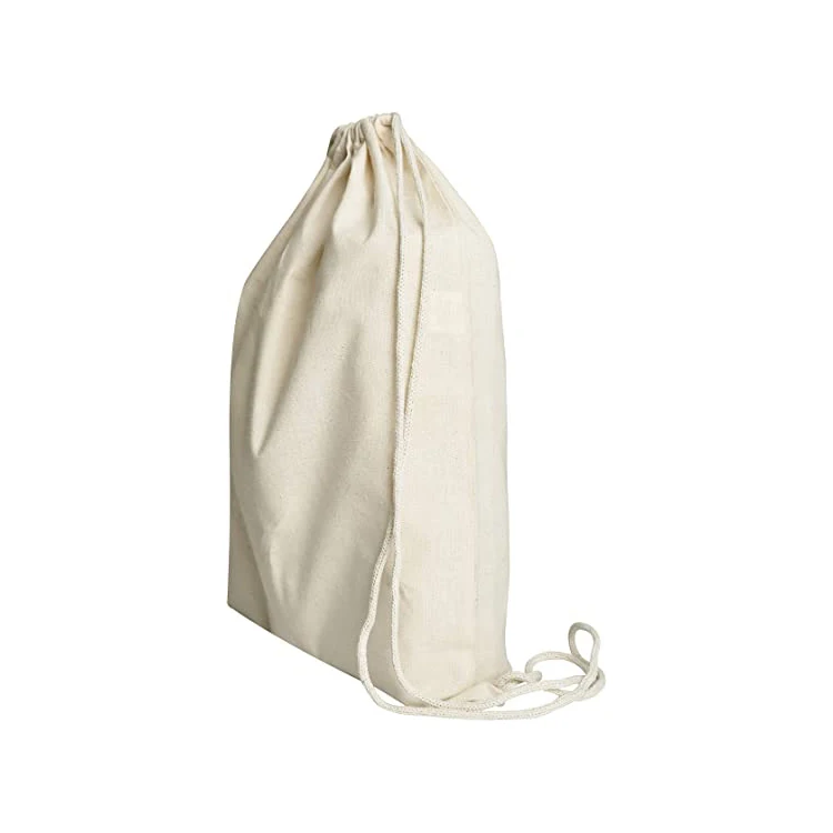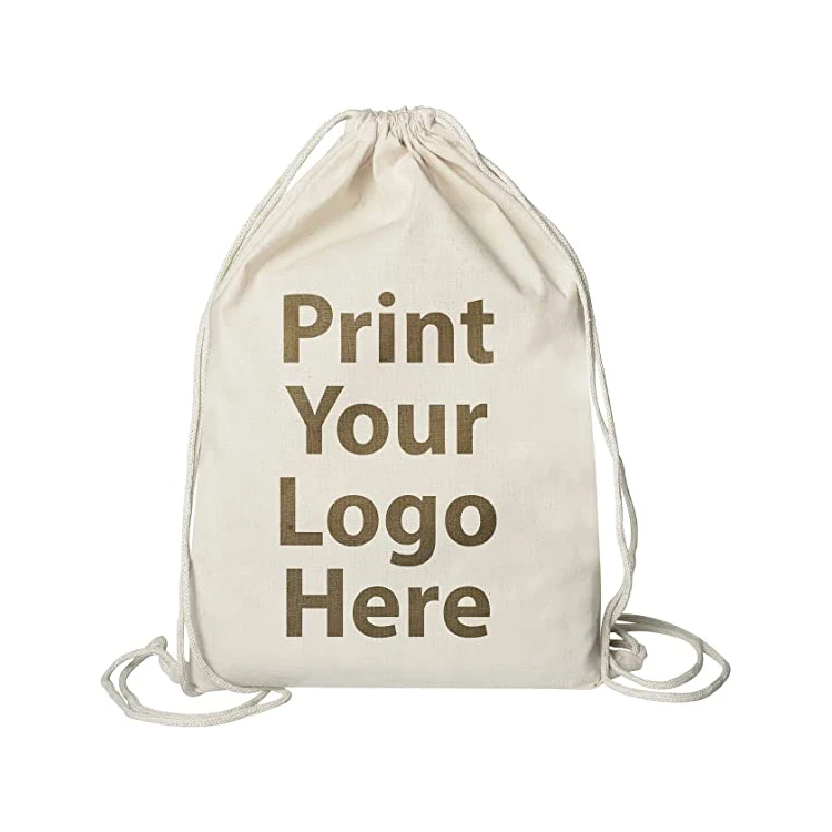 Custom logo gift packaging 8oz natural canvas drawstring bag for backpack