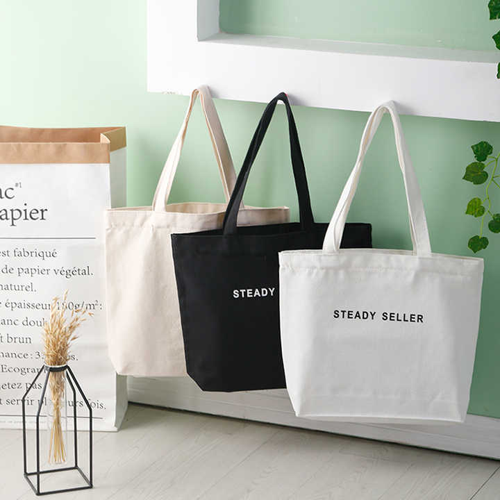 Custom Logo Printed Cotton Cloth Ladies fashion Shopping Bag Canvas Tote Bags