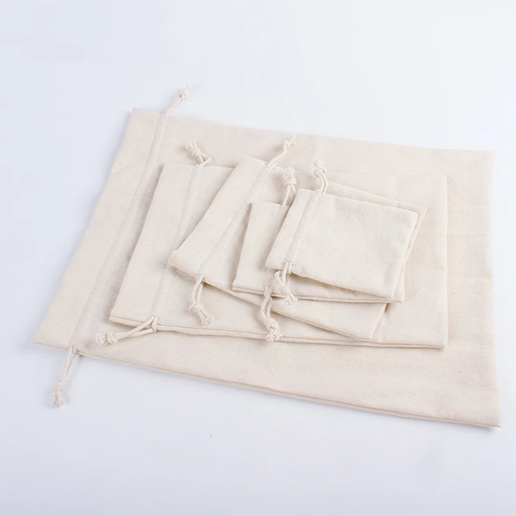 Custom logo sublimation print natural cotton canvas drawstring pouch bag