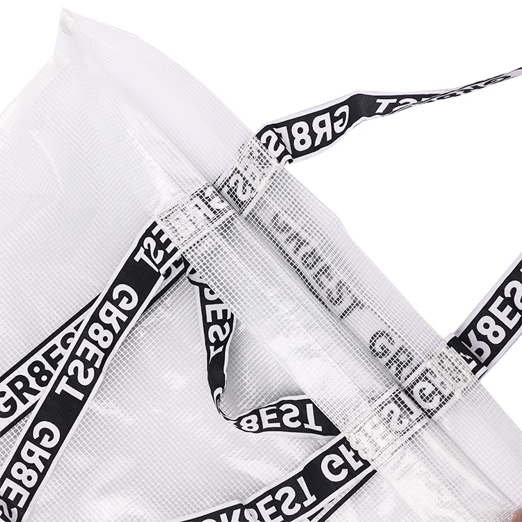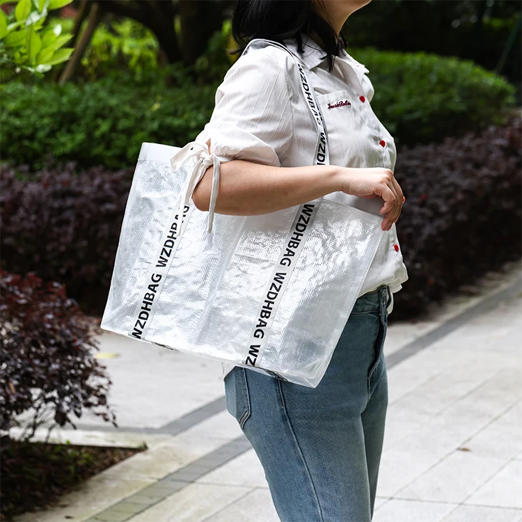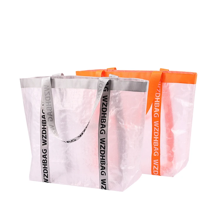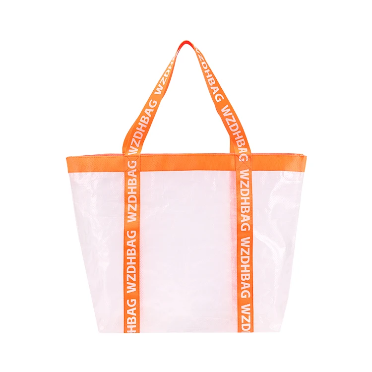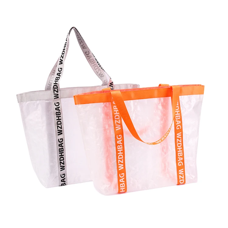 Custom Printed Large Clear PP Woven Tote Bag Reusable Laminated Waterproof Grocery Shopping Bag with Handle