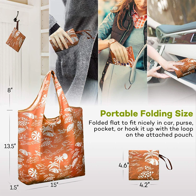 Customize Reusable foldable folding tote polyester nylon shopping bag
