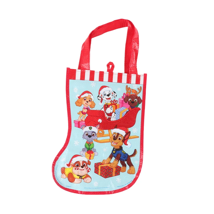 Factory Price Wholesale Socks Shaped Xmas Candy PP Woven Gift Bags For Christmas Favors Party Decorations