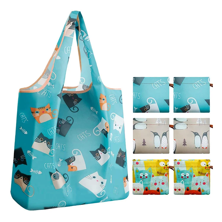 Full Color Printing Sports Foldable Reusable Waterproof Polyester Folding Shopping Ripstop Nylon Bag