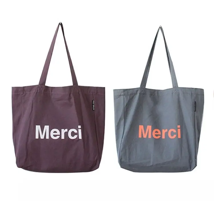 High quality cheap recyclable large custom printing canvas tote handle cotton calico shopping grocery bags with logo