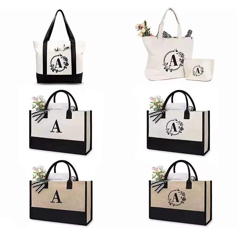 jute packaging beach bag with oem customized hessian jute bag with zipper inside
