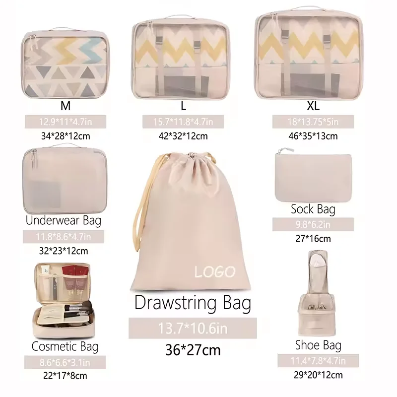 Luggage Storage Bag 8 Pcs Set Travel Organizer Bag For Carry On Suitcases Foldable Travel Cubes Set