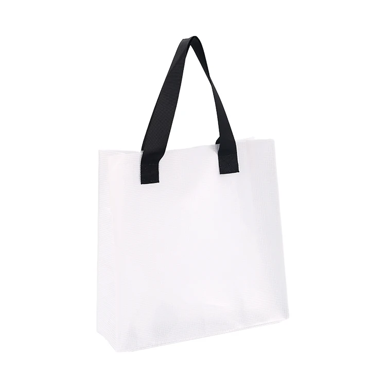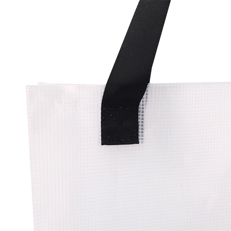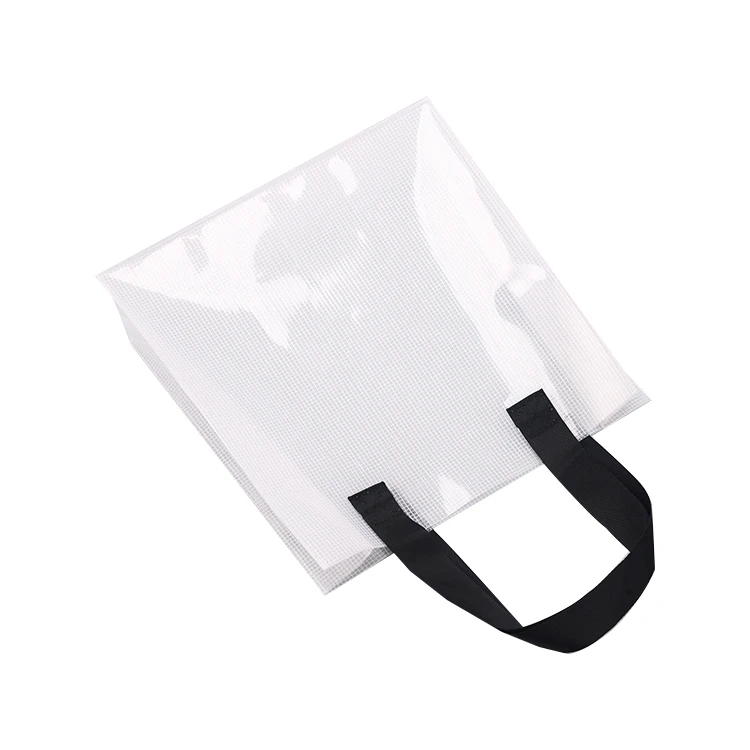 New arrival Custom logo fashion transparent ribbon handle plastic travel beach gift PVC shopping tote bag