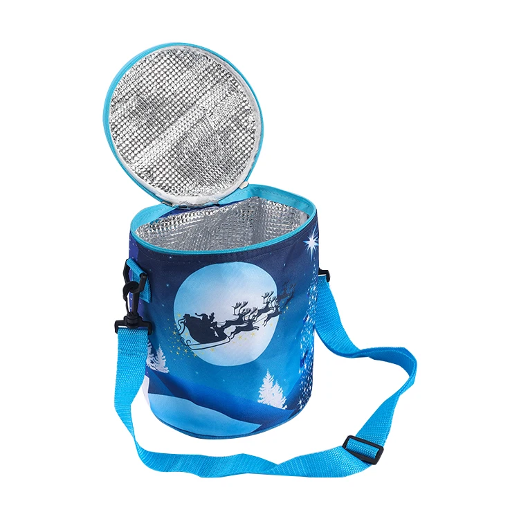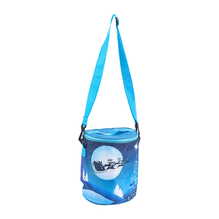 New design recycled reusable organic custom round shape bottle polyester cotton canvas cooler thermal bag with strap
