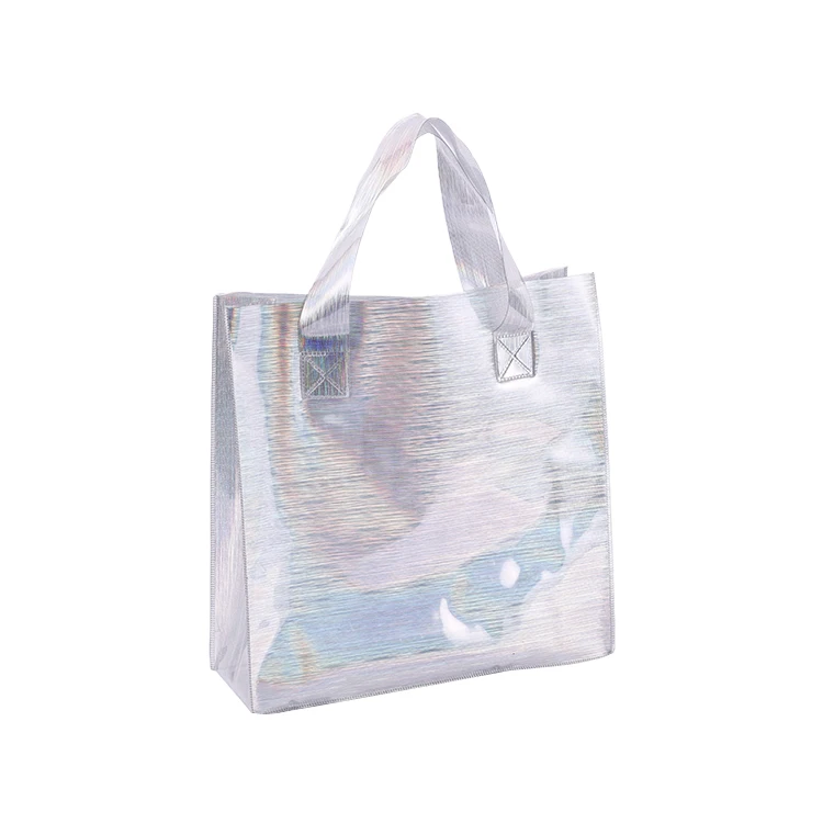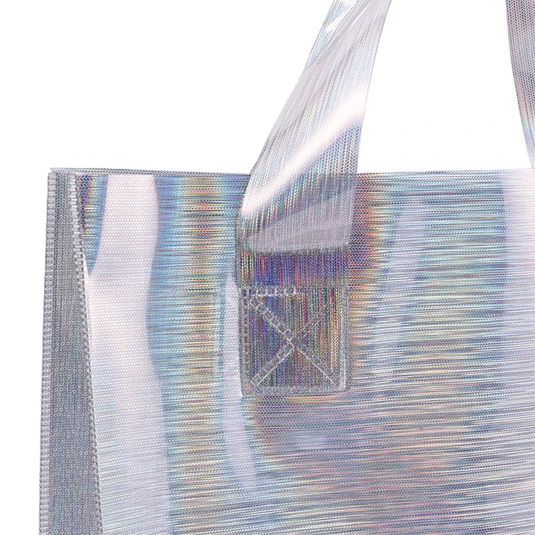 Promotional Custom Holographic Iridescent Rainbow Color PVC Handbag Fashion Jelly Tote Shopping Bag Wholesale