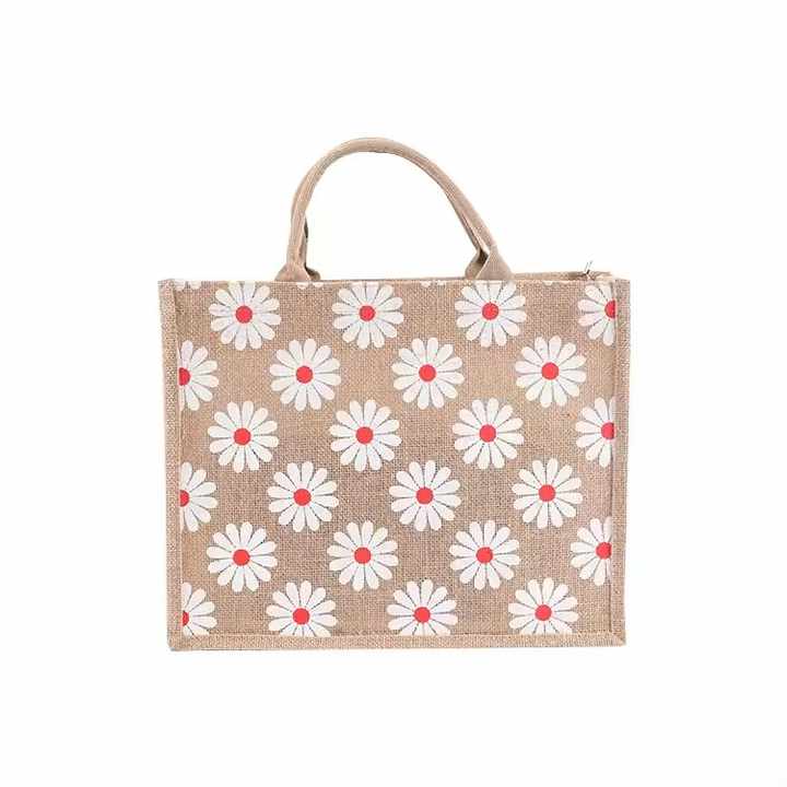 Wholesale Plain Hessian Large Natural Eco Friendly Burlap Jute Shopping Tote Beach Bag With zipper